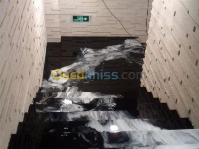 Epoxy 3D floor et metal floor et menuiserie aluminium et faux plafond PVC