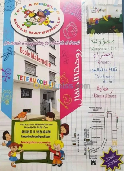 C’est avec un grand plaisirs qu’on vous annonce l’ouverture d’une nouvelle crèche “Tête á modeler " située à Moustakbel3 , Bir El-Djir , Oran ,à cette occasion on vous invite