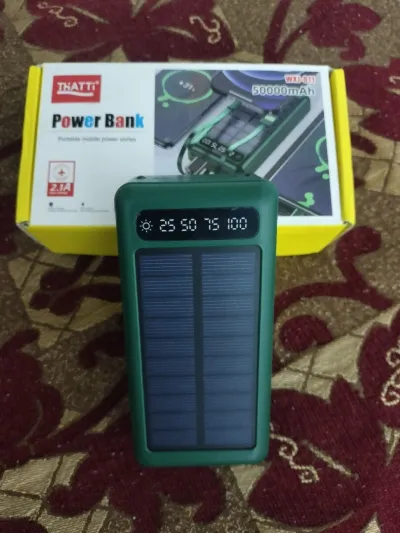 Power bank Thatti 50000 mAh, rechargable par l'energie solaire venant d'Europe. بنك الطاقة من شركة تاتي يشحن بالطاقة الشمسية او بالكهرباء ال