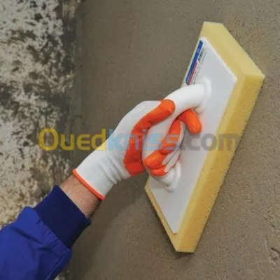 la truelle éponge Le corps est en plastique et la base est recouverte d'une éponge spéciale. Il est utilisé pour le nettoyage final des surfaces en céramique et en carreaux, en partic