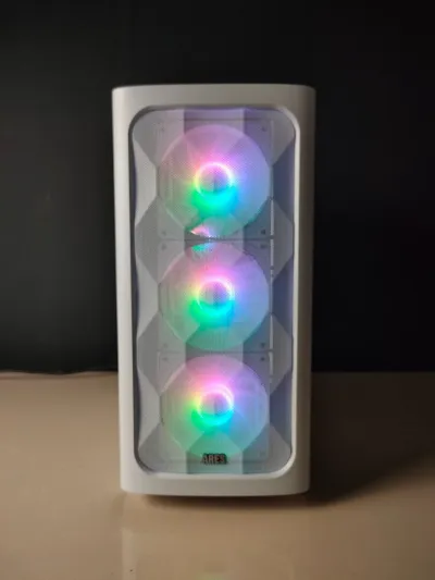 CPU R5 7500F COOLING Ac 1204 kpw raidmax white MOTHER B650m b msi GPU Rtx 5060 8g msi shadow 2x RAM 2x8 ddr5 5600 adata xpg white STORAGE 512go ssd nvme hiksemi SUPPLY 650w ares CASE Are