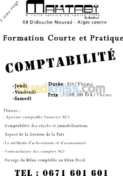 Maktabi Vous propose une formation de courte durée en comptabilité de 8 h pratique et utile étudiant en comptabilité en finance , employer , à la recherche d'emploi ...etc plusieu