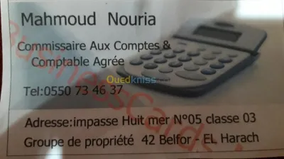 déjà 8 ans de expérience dans le domaine tenue comptabilité générale conforme norme (scf) suivants les travaux bilan comptable et fiscal scf. déclaration fiscal et parafiscal G5