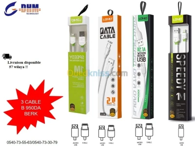 DHM Technology VOUS PROPOSE : UN PACK DE 3 CABLE LDNIO A 950 DA SEULMENT VOUS POUVEZ CHOISISSEZ TROIS CÂBLE PARMAIS LES QUATRES CÂBLES SUIVANT ,