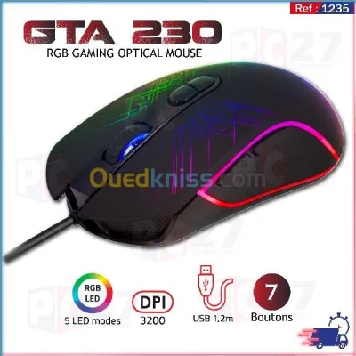 La souris Advance RGB GTA 210 est une souris optique dédiée au gaming, offrant ergonomie, réactivité et précision grâce à son capteur optique réglable jusqu'à 2400 DPI. Avec son ré