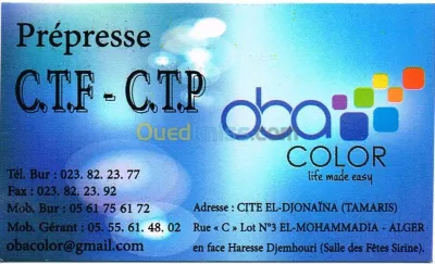SARL OBA COLOR FLACHEGE SUR FILM (CTF)-FLACHAGE SUR PLAQUES (CTP) tous formats plus la laivraison est gratuit