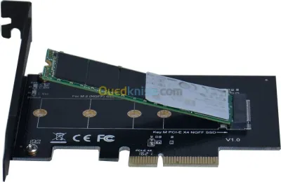Adaptateur PCI Express 4X vers M.2 (Clé M) – SSD NGFF 🔧 Fonctionnalités : Interface : PCI Express 4X Slot d’extension : M.2 Clé M uniquement Compatibilité : SSD PCIe NVMe M.2