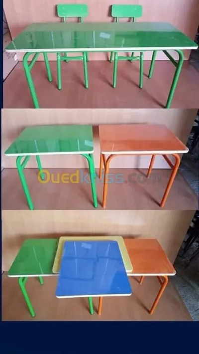 Fabrication mobilier scolaire bon prix et qualité :chaise résine chaise multiplexe .table monoplace. Table biplace. Chaise crèche avec table coloris.