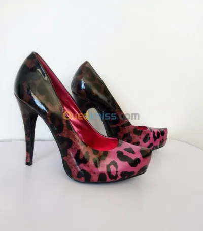 Talons aiguilles à imprimé léopard. Neuf. Rose et noire. Taille 38.