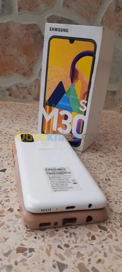 galaxy m30s en parfait état avec sa boite, 2anti choc, vitre incassable, chargeur capacité de stockage 64 gb batterie 6000 mAH caméra 48 mégapixels prix 38 000 da fixe
