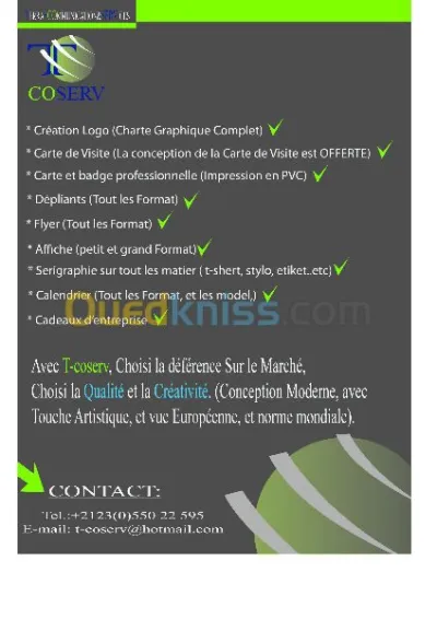 Des solutions clés en mains, comprenant : - Conception des Images ( Carte Visite , Calendrier , ,Couverture ... etc ) & Affiches ( Publicitaires , Annonces ... etc ) - Pour L'impress
