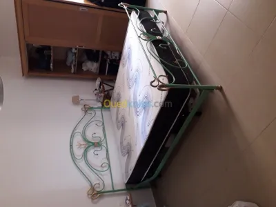 Lit coffret deux places dimensions 1m90 sur 2m plus deux tables de nuit très bon état سرير مزدوج بمقاس 1.90 متر × 2 متر بالإضافة إلى طاولتين جان
