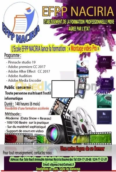 FORMATION MONTAGE + VIDEO 2 mois de formation groupe samedi 13H00-15H30 groupe lundi 13h00 15h00 LIEU : dely brahim Alger