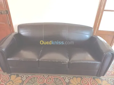 Avendre fauteuil le bas en cuire et le dos en tissu katifa enti tache Maron chocolat