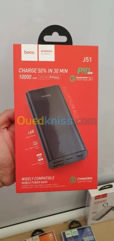. J51 Cool power banque d'alimentation mobile 10000mAh double prise en charge de sortie USB et Type-C pour PD3.0 QC3.0/2.0 FCP AFC VOOC DASH avec indicateur LED . Mode de charge rapide –
