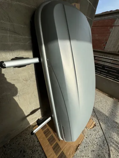 Je vends un coffre de toit Feu Vert S450 grande capacité 450L avec clé bonne état Quelques petites fissures (n'empêchant pas le fonctionnement/l'intégrité du coffre) => d'où le faible