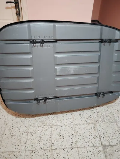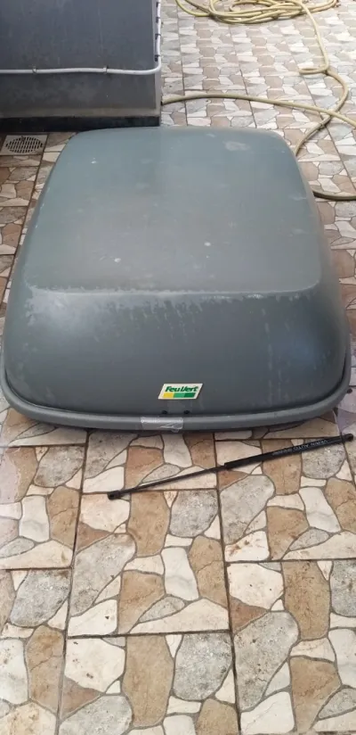 Vends coffre de toit de marque feu vert Longueur 130cm Largeur 80 cm Hauteur 30 cm Bonne etat générale Problème de serrure et verrin.