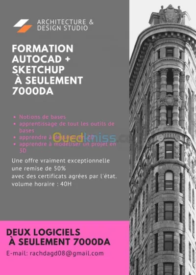 formation pour les éudiants autocad avvec sketchup à seulement 7000da volume horaire 40H