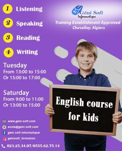 Suite à l’intégration de la langue anglaise au cycle primaire, l'école Genisoft lance des session d’initiation et préparation à partir du mois d'octobre pour les enfants (6-10 ans)