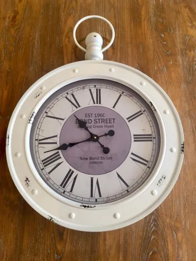 Bonjour, Grande Horloge Murale géante XXL Vintage en métal avec Chiffres Romains. Longueur 80 cm, la largeur 60 cm, l'Horloge est importée d’Espagne, poids 5,3 kg. idéal pour décorati