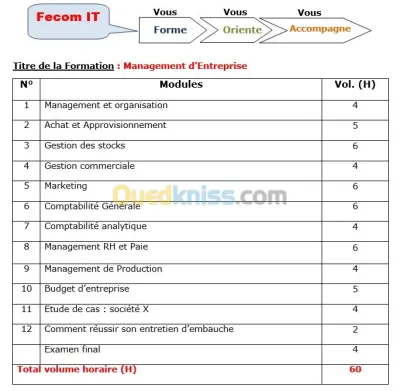 Management d'entreprise Un premier pas vers le recrutement Vous êtes universitaire ou fraîchement diplômes? Vous voulez intégrer une société. Fecom IT établissement spécialisé