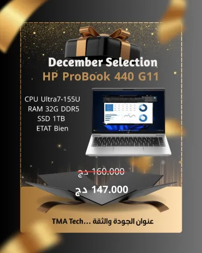 LAPTOP HP PROBOOK 440 G11 ULTRA 7 155U 12M Cache, up to 4.80 GHz 16GB RAM DDR5 512GB SSD NVME ECRAN 14"FHD NEUF JAMAIS UTILISÉ Prix: 225 000da - **Idéal pour** : Les pro