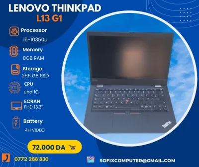Disponible chez #Sofix computer plusieurs modèles et configurations une garantie de 6 mois LAPTOP LENOVO THINKPAD L13 G1 I5-10350U 8G 256G SSD 13,3". CPU: Intel I5-10350U 10éme génératio