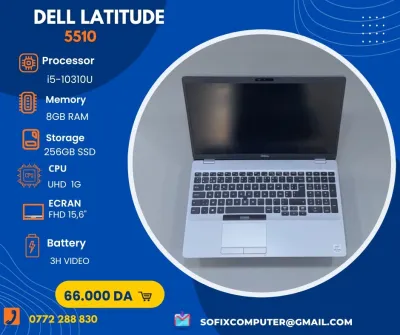 Disponible chez #Sofix computer plusieurs modèles et configurations une garantie de 6 mois LAPTOP DELL LATITUDE 5510 I5-10310U 8G 256G SSD 15,6". CPU: Intel I5-10310U 10éme génération RA