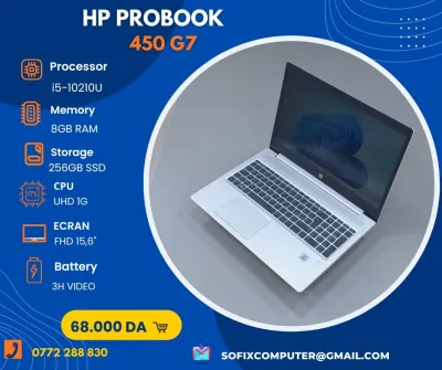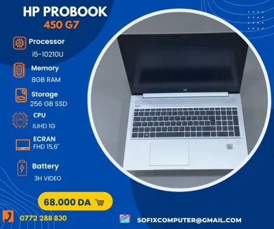 Disponible chez #Sofix computer plusieurs modèles et configurations une garantie de 6 mois LAPTOP HP PROBOOK 450 G7 I5-10210U 8G 256G SSD 15,6". CPU: Intel I5-10210U 10éme génération RAM