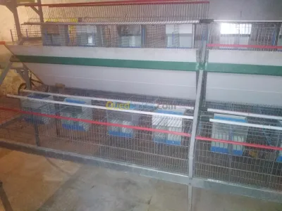 Je mets en vente mes batteries des lapins 1ère batterie capacité 10 femelles en deux façade avec un autre niveau pour les lapins à l'age un mois 2 ème batterie capacité 96 cages pou