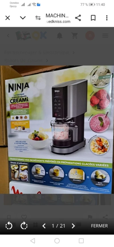Machine à glace neuf jamais utilisé dans son emballage. NINJA CREAMI vous donne la possibilité de faire plusieurs sorte de glace chez vous Pour le prix contacter moi par mail.