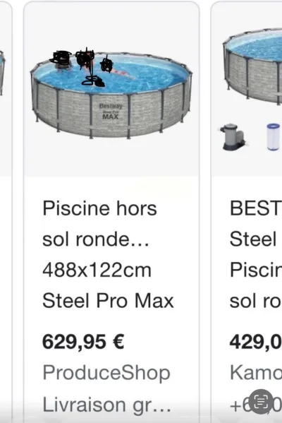 A vendre piscine neuve longueur 4,80m profondeur 1,22m, emballé stell pro max valeurs 151 000da Je la vend 96 000da Secteur Alger