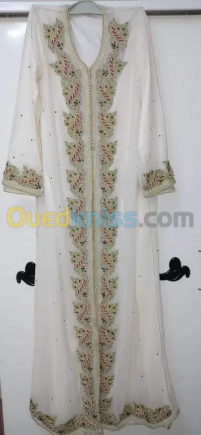Caftan marocain royal couleur créme doublé intérieur en soie éxtérieur en organza pailleté et perlé idéal pour l'AID