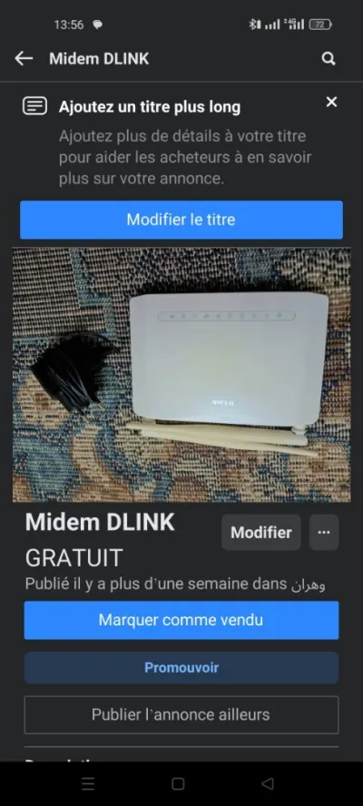 . Modem Routeur ADSL Huawei HG532e en bon état (600 DA). . Modem Routeur ADSL D-Link DSL-2750U en bon état (600 DA). . Modem Routeur ADSL D-Link DSL-124 état neuf (3000 DA).