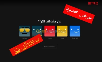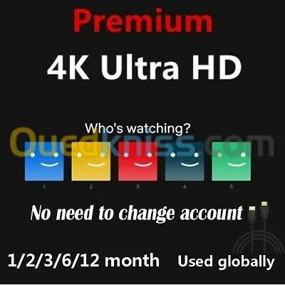 Netflix 1 mois 1400 DZD Premium 4 écrans. Netflix 2 mois 3800 DZD Premium 4 écrans (Compte renouvelable). Netflix 70 jours 3800 DZD Premium 2 écrans (Non renouvelable)