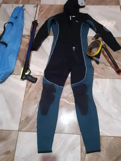 Tenue de pêche taille 3M,4 millimètres, fusille de peche+masque+les palmes.