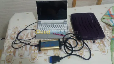 À vendre Auto com accepte voiture jusqu’à 2021 très bon état de fonctionnement avec pc portable tactile scanner re programmation lecture des données en direct beaucoup d’options s