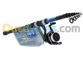Canne a pêche eau douce et eau salée complète avec tout ces accessoires de pêches . Moulinet fils de pêche leurres etc Longueur 3.5m matière fibre de verre Jamais utilisé Mer