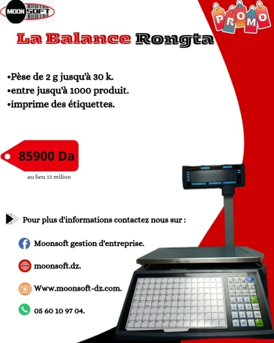 BALANCE ELECTRONIQUE RONGTA RLS 1000 VENTE ET CONFIGURATION MATERIEL CODE A BARRE ET LOGICIEL DIPOSIBLE PAYEMENT A LA LIVRAISON