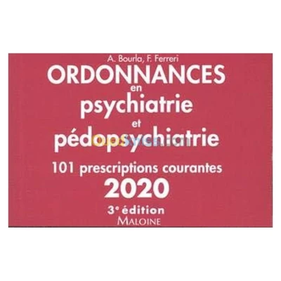 Titre : Ordonnances en psychiatrie et pédopsychiatrie 2020, 3e éd Auteur : Bourla A., Ferreri F. Editeur : Maloine Année : 2020 Théme : Médecine Et Paramédical Sous-théme : Pharmacie