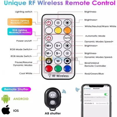 salam lkhawa ring light jdida , jet melhih , fiha : 34 mode de couleur tripode 200 cm / 2M caméra contrôler b bluetooth télécommande pour régler les couleurs 12 RGB ring light , m
