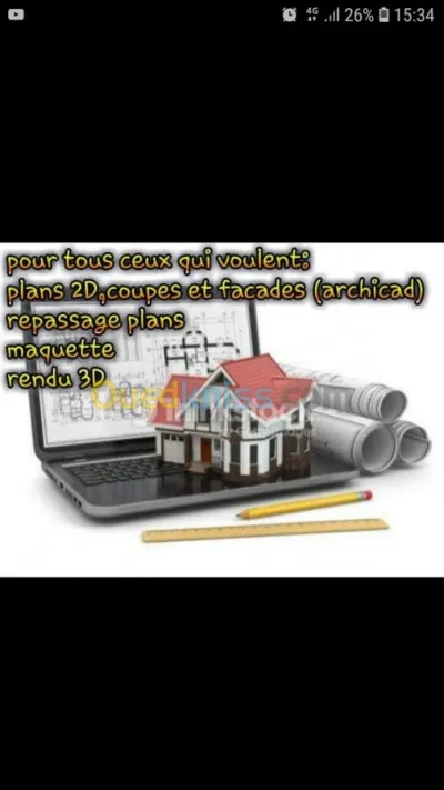 Je Vous Propose mes services Pour Les Prestations de service en matière d'architecture / Etudes D’aménagement / Plans D’exécution / gestion, suivi et de Control de L’exécution de p