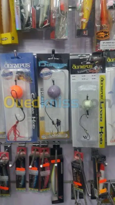 ensemble de canne, moulinet, hamecons et autres articles de pêche jamais utilisés sous emballage, le tout habt Kaba. -Moulinet de marque viking modèle SF-300 lourd, •Fabriqué en C