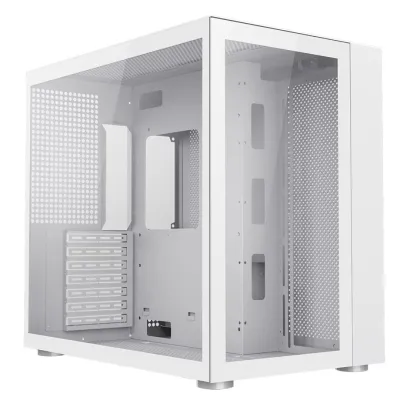 270° Full-view tempered glass Seamless paneling design with full-view panoramic tempered glasses, providing a transparent and spacious feel. Inclined power supply shroud decorated with embe
