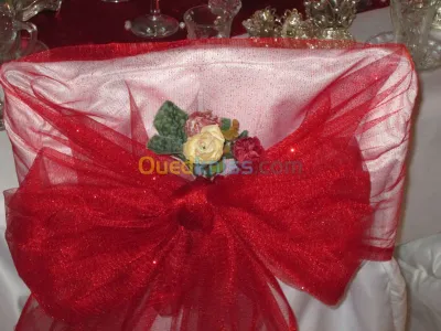 Afrah déco vous propose un méridien pour la mariée ( scène de mariée ) plus la vaisselle (luminarc) plus nappes et housse verres a thé et a café et verre a ballon + une HABILLEUSE D