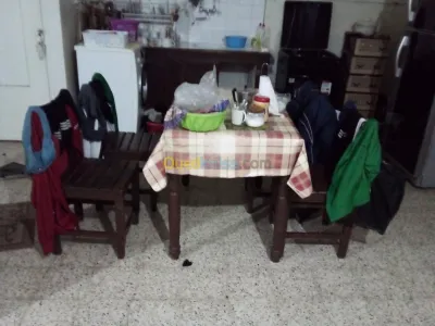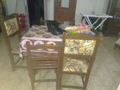 * TABLE CUISINE ET SALLE A MANGER disponible en 4 et 6 chaises QUALITÉ ET SOLIDITÉ . * type de bois : BOIS ROUGE PREMIER CHOIX * Dimension Table 4 chaises : 120 sur 75cm Prix :32000da