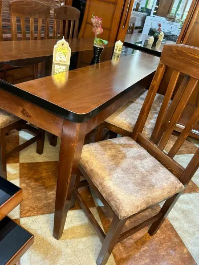 6 chaises pour table à manger en bois être très bien finis , solide, présentable, de couleur marron,avec tissu anti tache de très haute qualité.. A : 17000 DA ,----> la chaise 1000