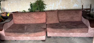 Fauteuils Forme L avec 2 pouf et 3 coussin fauteuil à recycler et table base Fih khdma