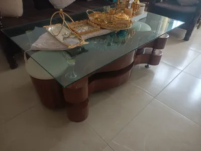 table basse verre occasion bon état importation avec deux pouf