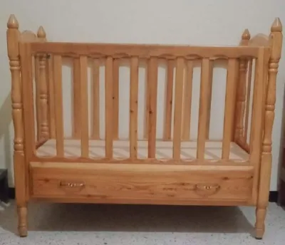lit pour bébé avec tiroire en bois rouge bon état...